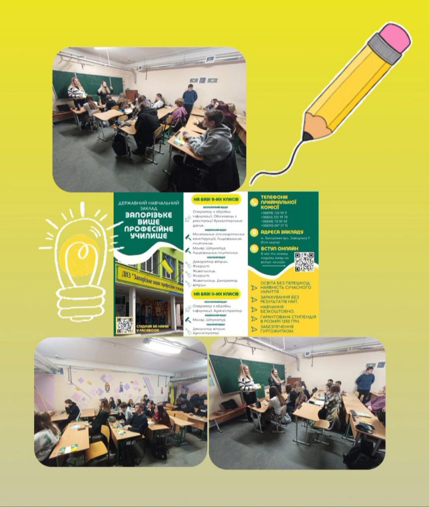 У Запорізькій спеціалізованій школі I–III ступенів №100 була проведена профорієнтаційна робота, спрямована на формування в учнів усвідомленого та відповідального ставлення ставлення до вибору майбутньої професії.Під час зустрічі учні отримали корисну й актуальну інформацію про можливості подальшого навчання в нашому закладі, … Продовження