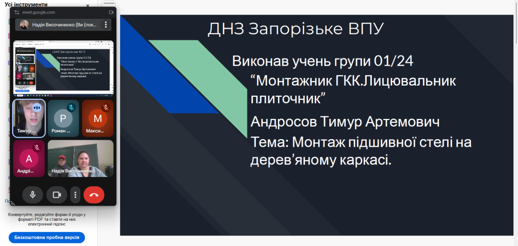 У процесі захисту кожен здобувач освіти представив презентацію, у якій відобразив послідовність виконання технологічного процесу монтажу гіпсокартонних конструкцій 4 розряду.