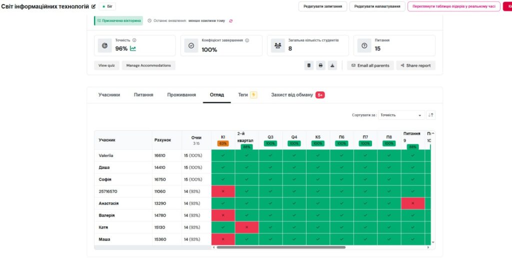 Студенти активно долучилися до конкурсів та завдань, демонструючи ерудицію та зацікавленість у сучасних інформаційних технологіях. Усі учасники відзначили високий рівень організації та цікавість матеріалу. Вікторина не тільки розширила їхні знання, але й сприяла формуванню командного духу та дружньої атмосфери серед студентів.