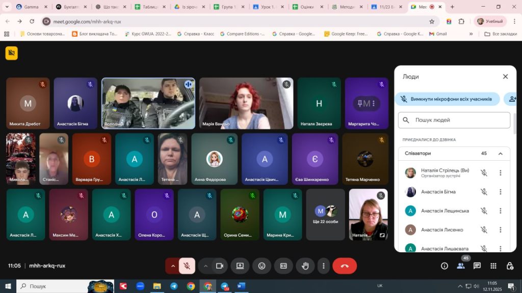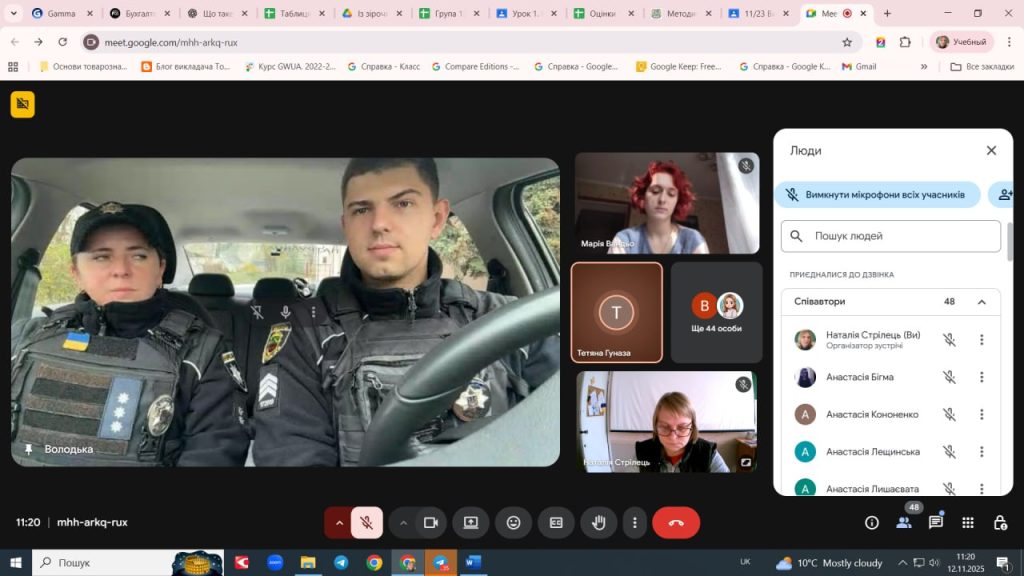 13.11.25р. о 10.00 відбулась онлайн зустріч з інспектором ювенальної превенції Запорізького РУП ГУНП в Запорізькій області Шарудою А.В. Було порушено багато тем. В цікавій формі розкрити питання та ситуації правового поля сьогодення. Під`єдналося 44 учня.